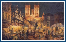 The first German-type Christmas Market in Britain had its inception in Lincoln on 16th December 1982. The opening ceremony was performed jointly by the Oberburgermeister of Neustadt an der Weinstrasse, the Mayor of Lincoln and the Chairman of Lincoln’s twinning committee.