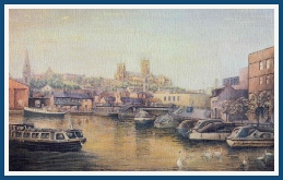 Brayford Pool is probably a remnant of the much larger stretch of water which may have given Lincoln its Celtic name of Lindon..from Lyn, meaning a lake. It is joined on the east by the River Witham and on its west by the Fossdyke...dug by the Romans to connect Lindum with the River Trent at Torksey. With this acess to internal waters, and the sea, Lincoln prospered.